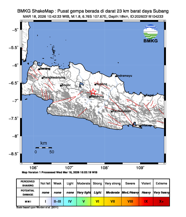 Pusat gempa berada di darat 23 km barat daya Subang
